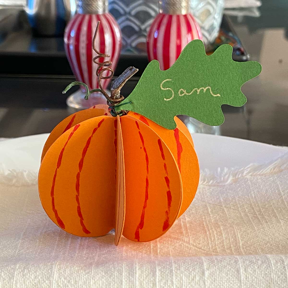 Make every guest feel special by customizing an oak leaf with metallic ink, then use floral wire to attach it to a mini-pumpkin (or use a 3D paper pumpkin from our 3D Pumpkin & Squash templates!